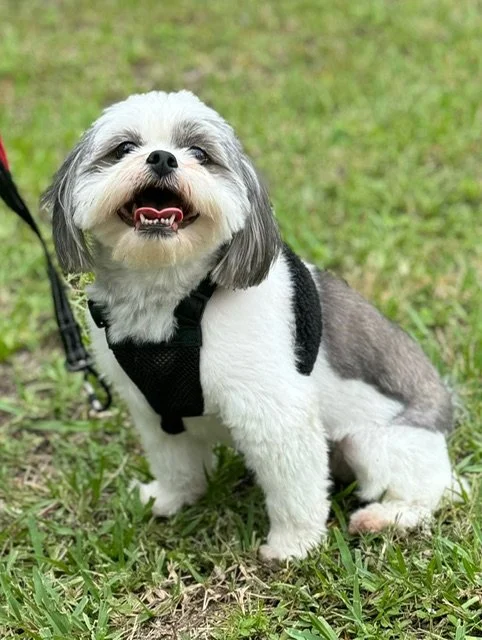 Scooby was originally adopted from the Flagler Humane Society by an elderly lady. At the time he was a 3-4 year old ShihZu Mix. As time went on, Scooby became too much for her to handle as he had become anxious causing him to have aggressive behavior towards ANYONE who entered her home. This was causing his owner too much stress after having a stroke. Courtney was called to come and complete an assessment to see if he would be a good fit for the ranch to train and re-homed in a more suitable situation for him. He took to Courtney immediately. Training and confidence building started right away-after about six months, Scooby was ready to be adopted! Courtney teamed up with Ayla’s Acres, a rescue center in St. Augustine, and he found his happily ever after in St. Augustine with an amazing family and his Shih Zu brother!