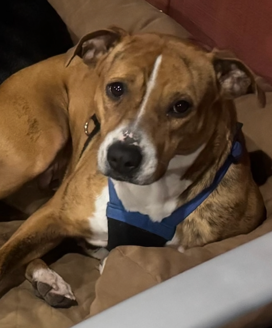 2 yr old female petite pitty. She was found as a stray wondering St. Augustine who had clearly had a litter of pups at one point. She was taken to a local rescue in St. Augustine to be vetted and came back as heartworm postive. Joplin, her name at time of rescue, was as friendly as they come and loved to play and greet all people and dogs that she crossed paths with. She was playful, spunky, loyal, cuddly, and an all-around great companion. Due to no fault of her own, she was put on the euthanasia list where she was again rescued and brought to the Pro Pet Train Ranch. Joplin had severe separation anxiety and needed some general obedience and leash training. She excelled in all areas and gained the needed confidence to settle and feel safe enough to relax. She became one of the best-behaved dogs on the ranch. She welcomed and loved meeting new people and dogs alike. After just 3 months she was adopted! She now lives in Atlanta, GA and she was given a new name, TigerLily - (due to her orange and black striped coat) and began her new journey full of love and all the comforts of having a furever home!